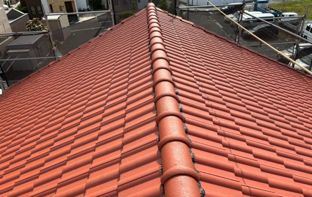 屋根塗装の上塗りを行い施工完了しました。