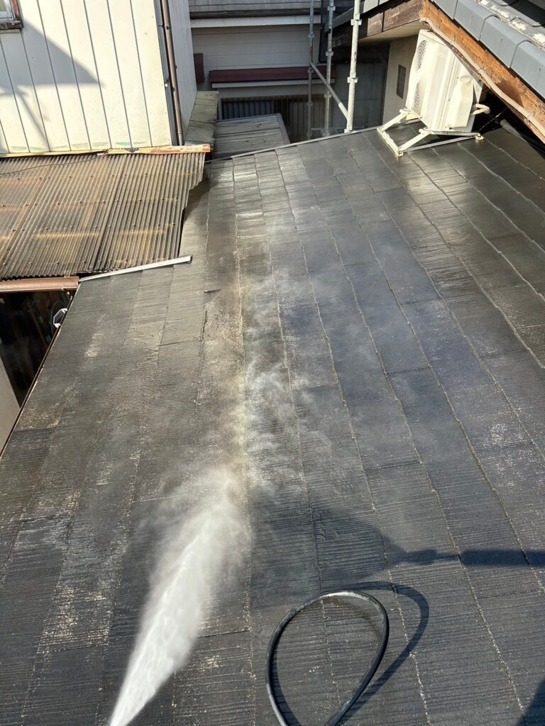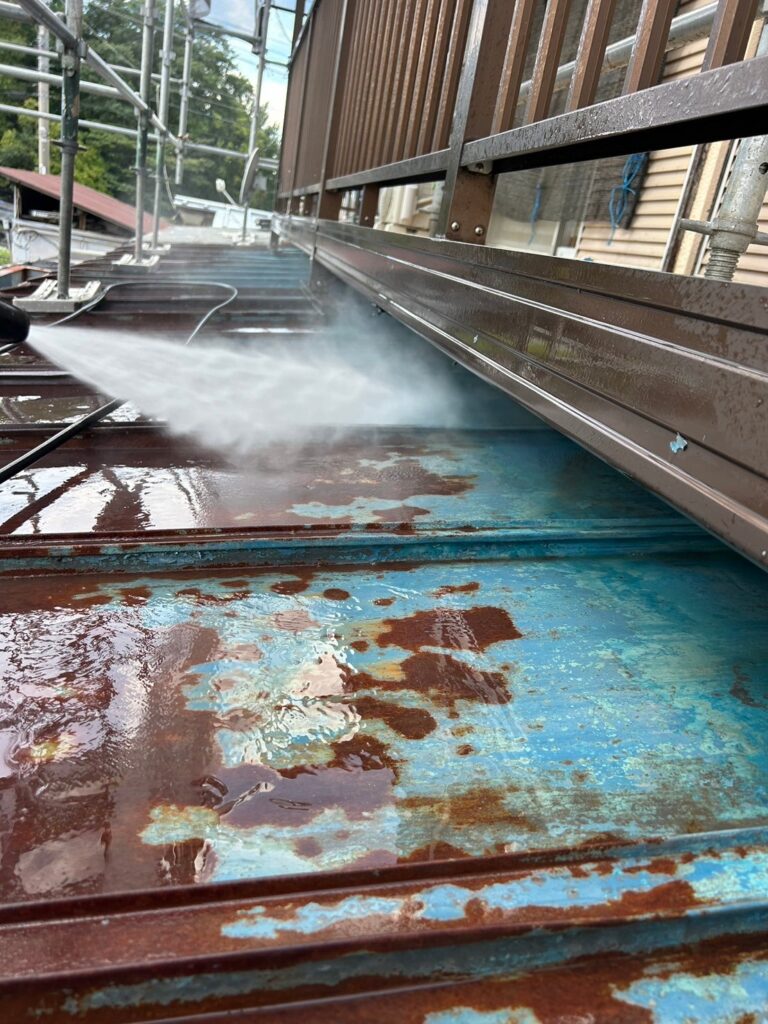 屋根塗装 高圧洗浄、下塗り、錆止め