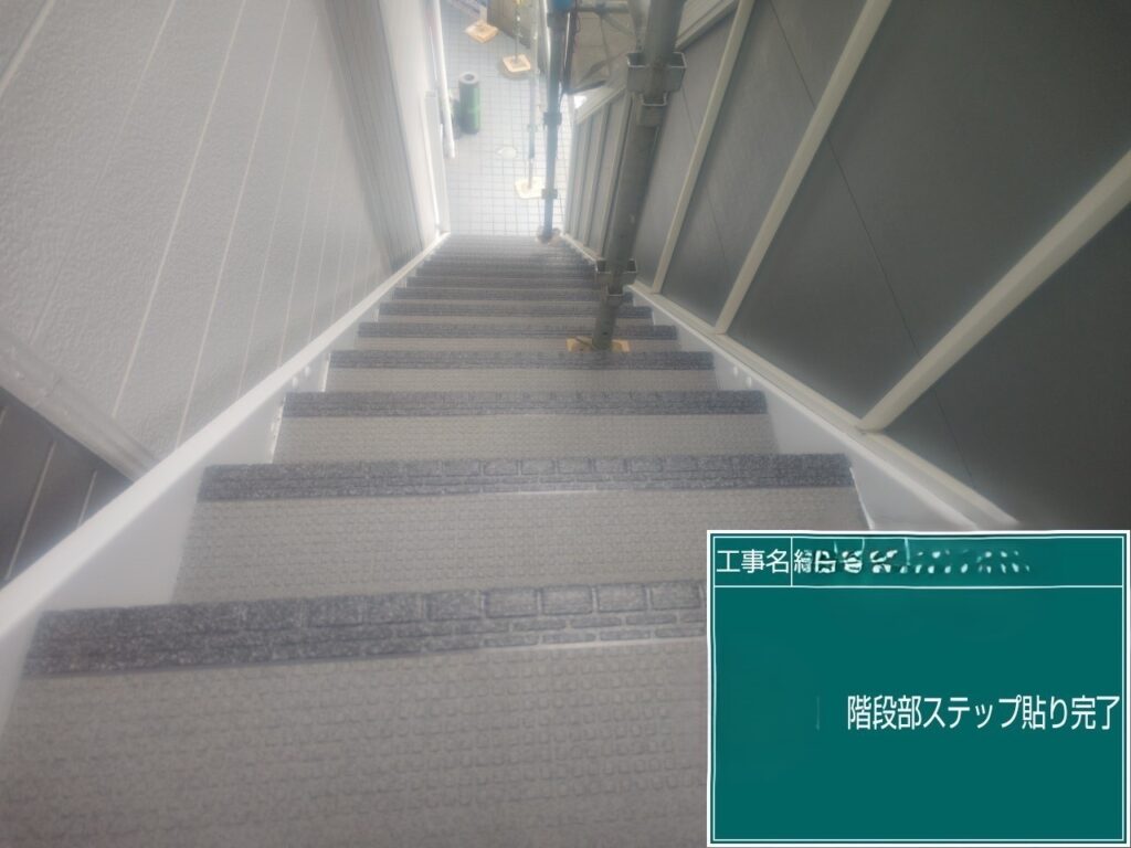 階段ステップ、長尺シートを貼って全行程終了しました。
