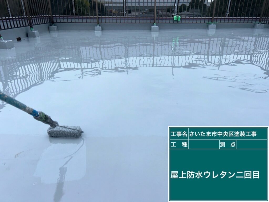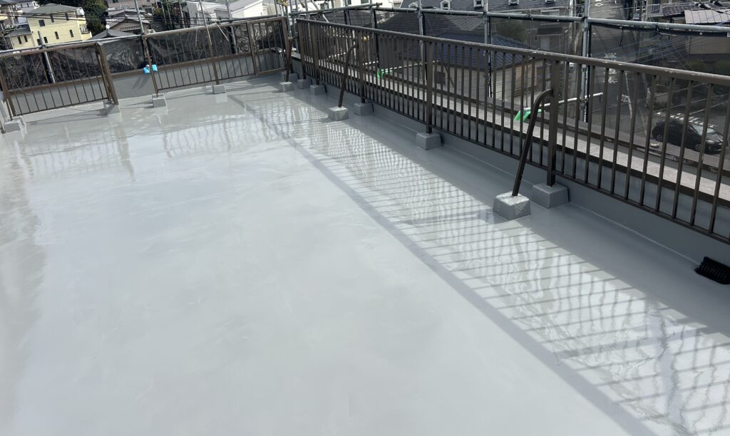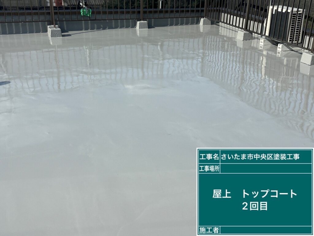 トップコート、ウレタン防水を行い、屋上は終了しました。