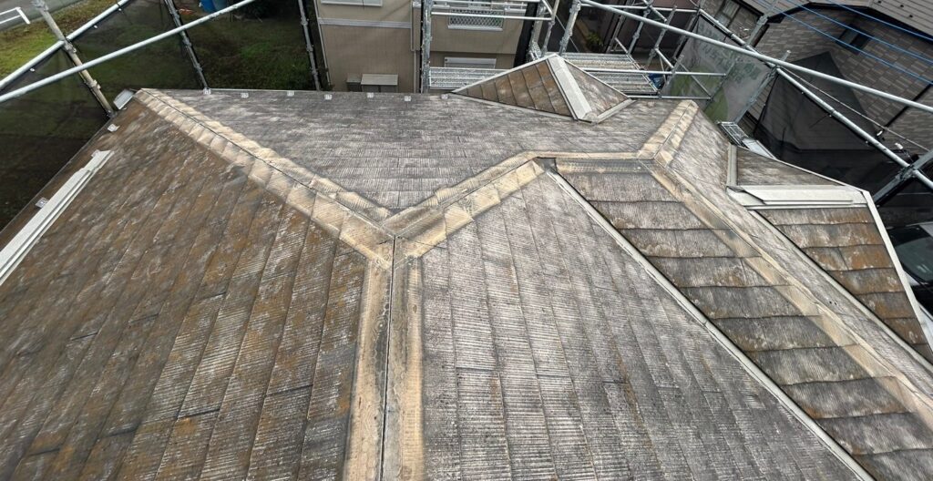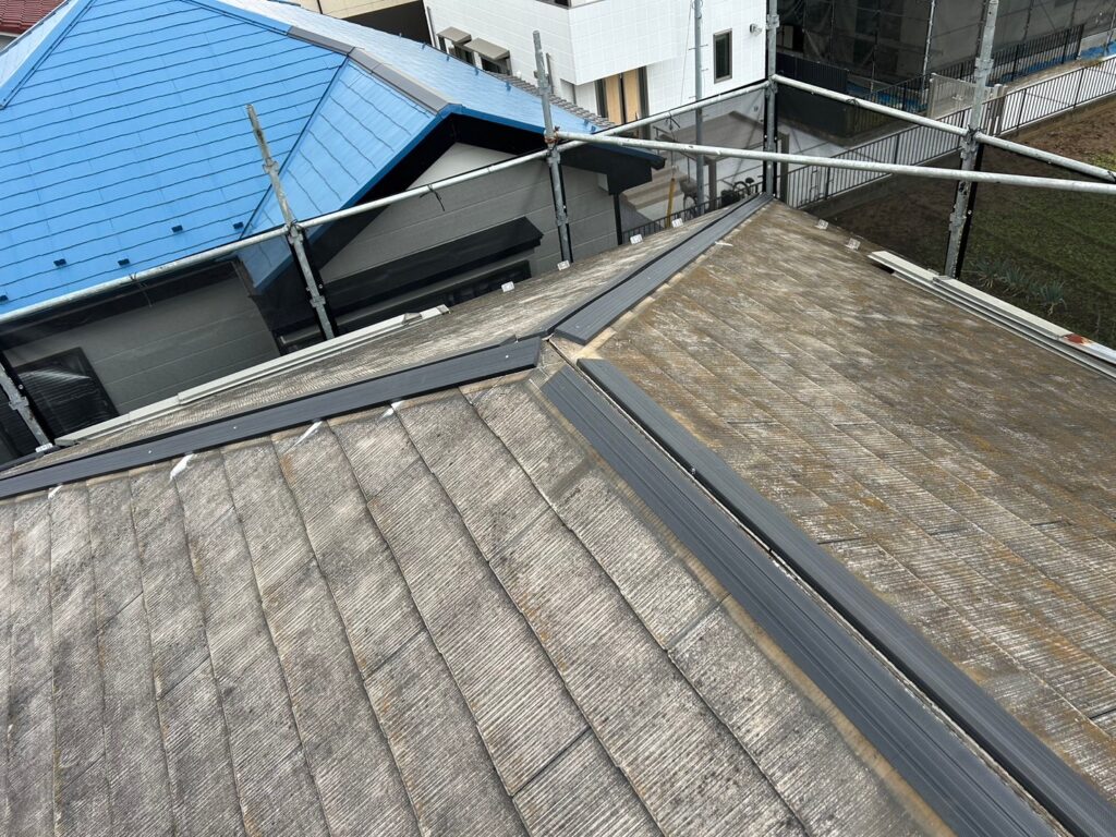 屋根塗装を行う前に板金を外してコーキングで補修し貫板交換を行いました。