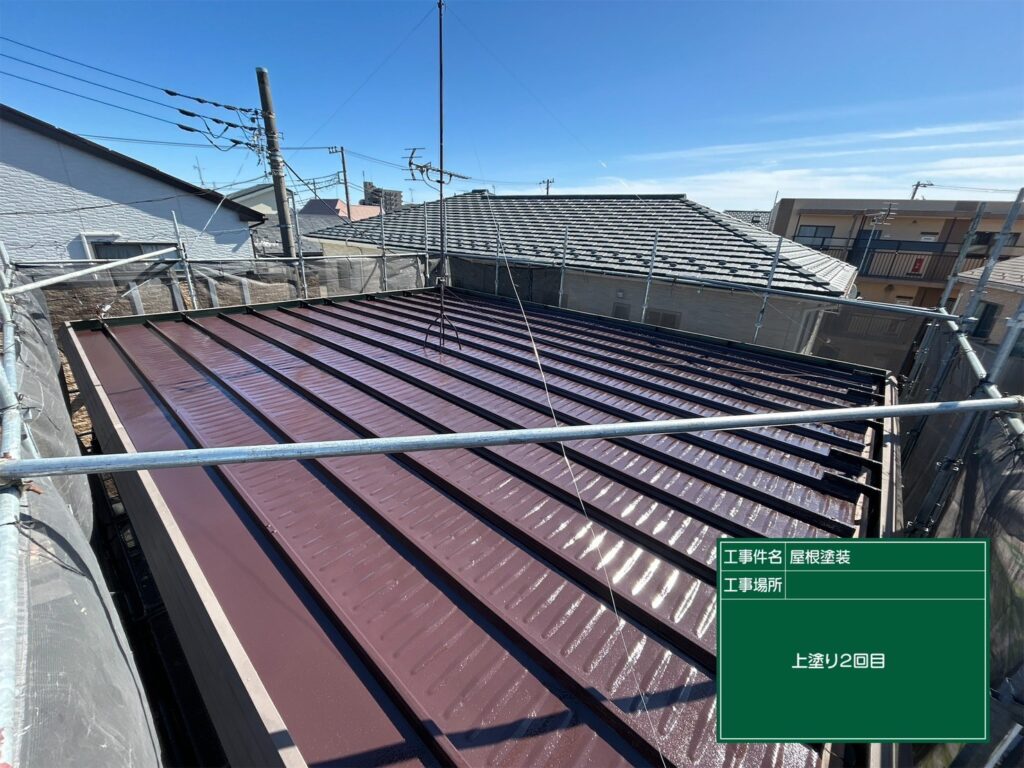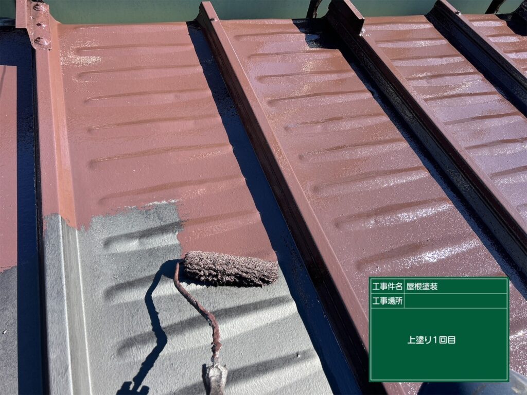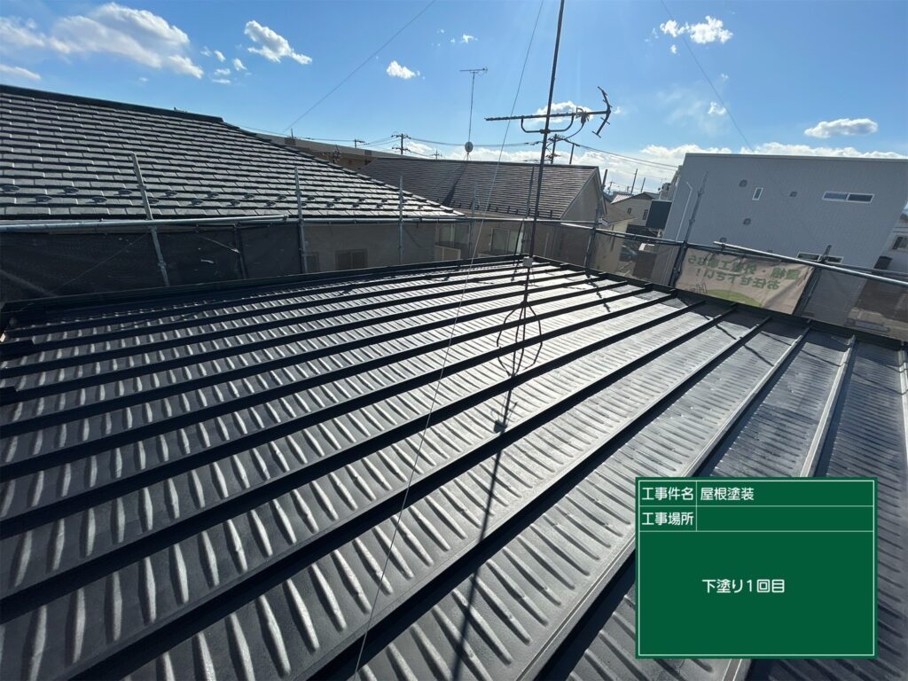 屋根塗装の下塗り、中塗り、上塗りを行い屋根は終了しました。