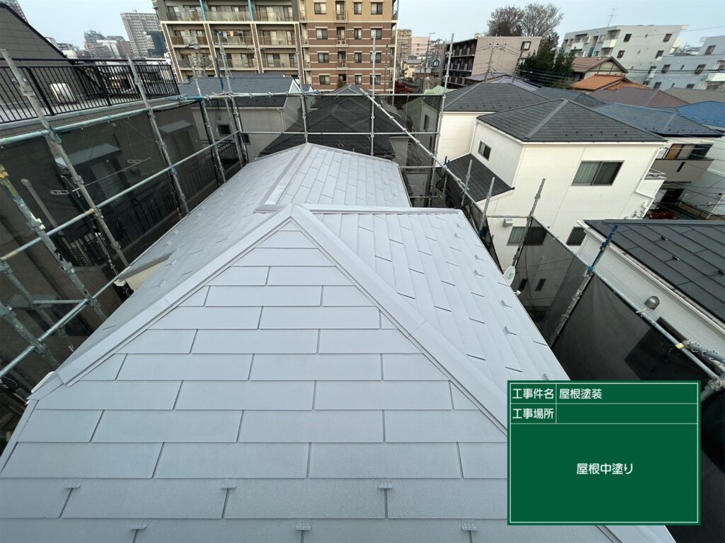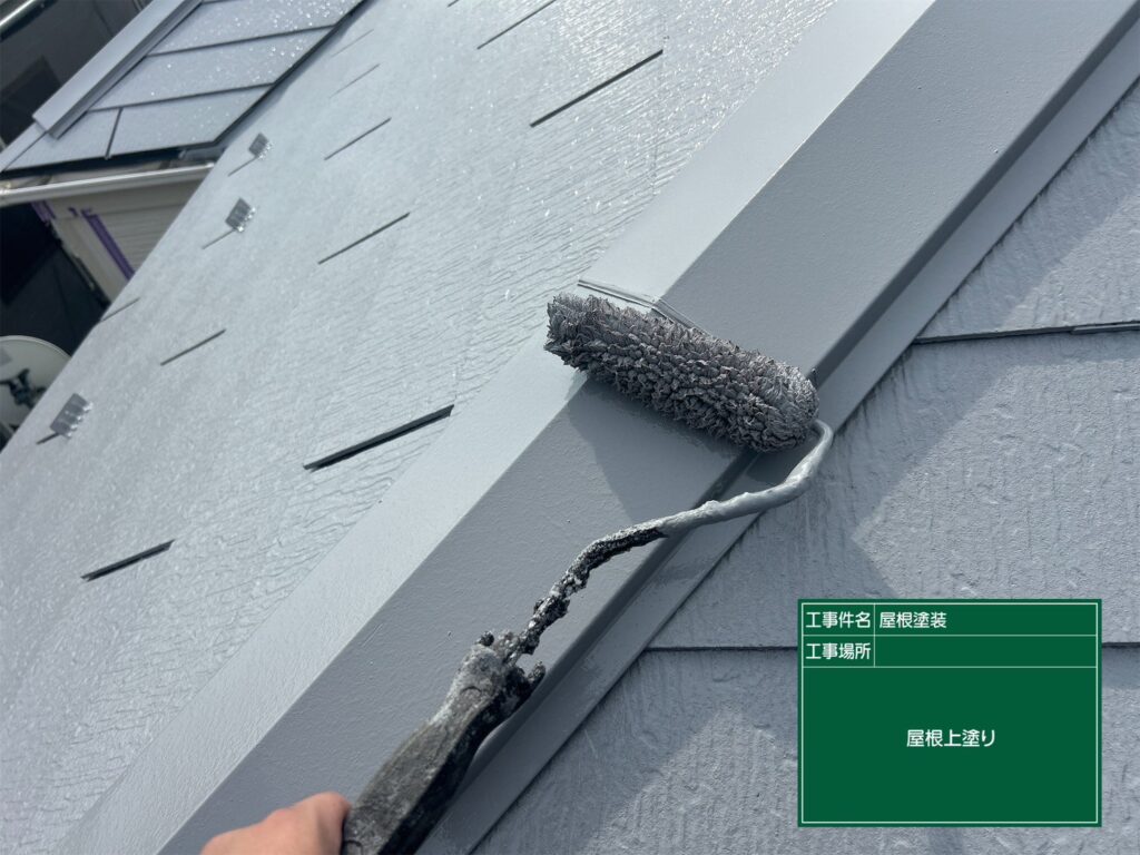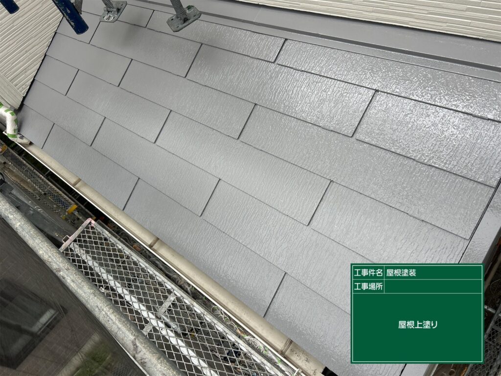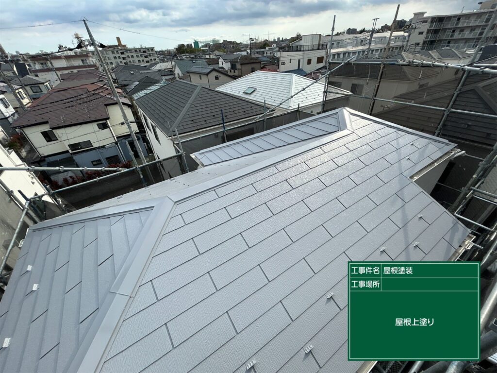 屋根塗装の下、中、上塗り工程がすべて終了しました。