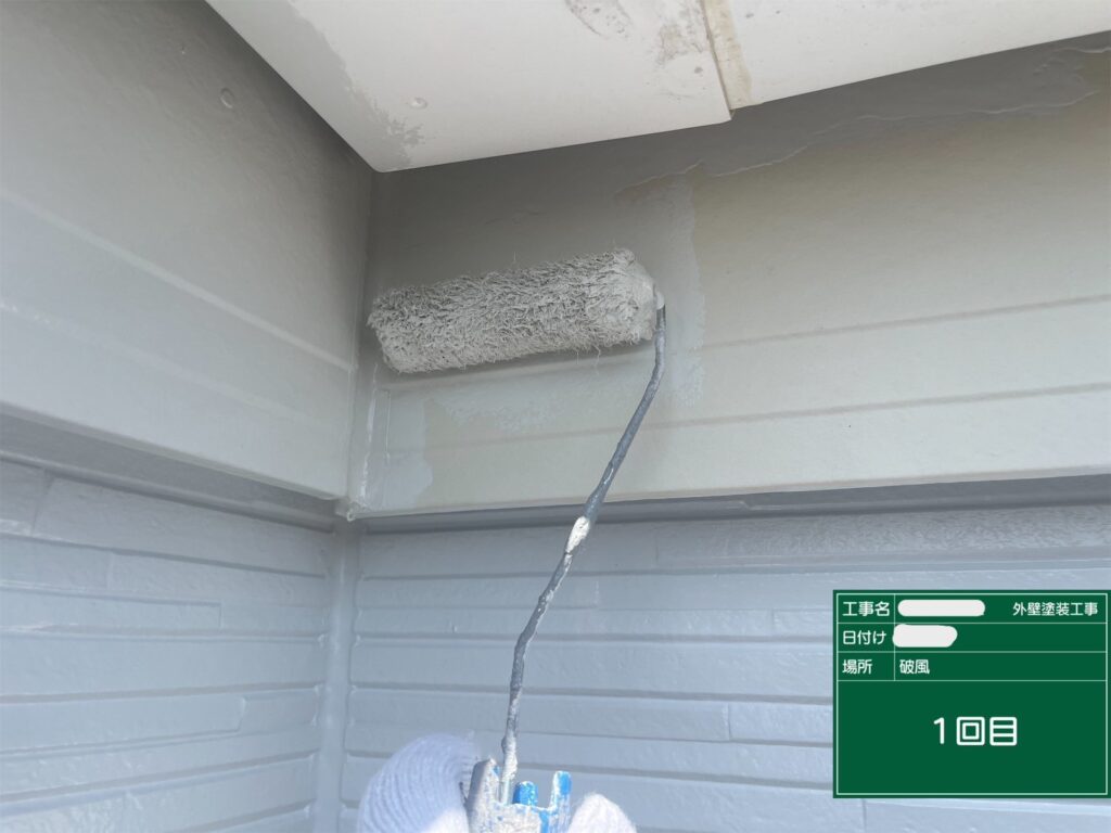 付帯部の中・上塗りを行いました。