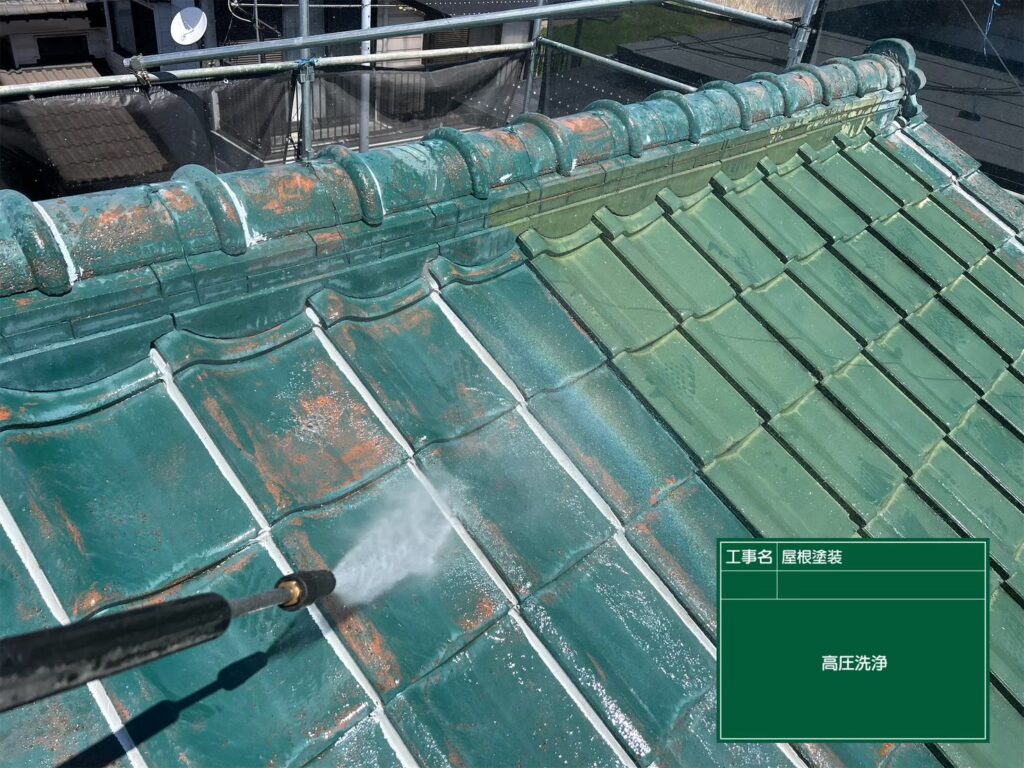 屋根や付帯部などの高圧洗浄を行いました。