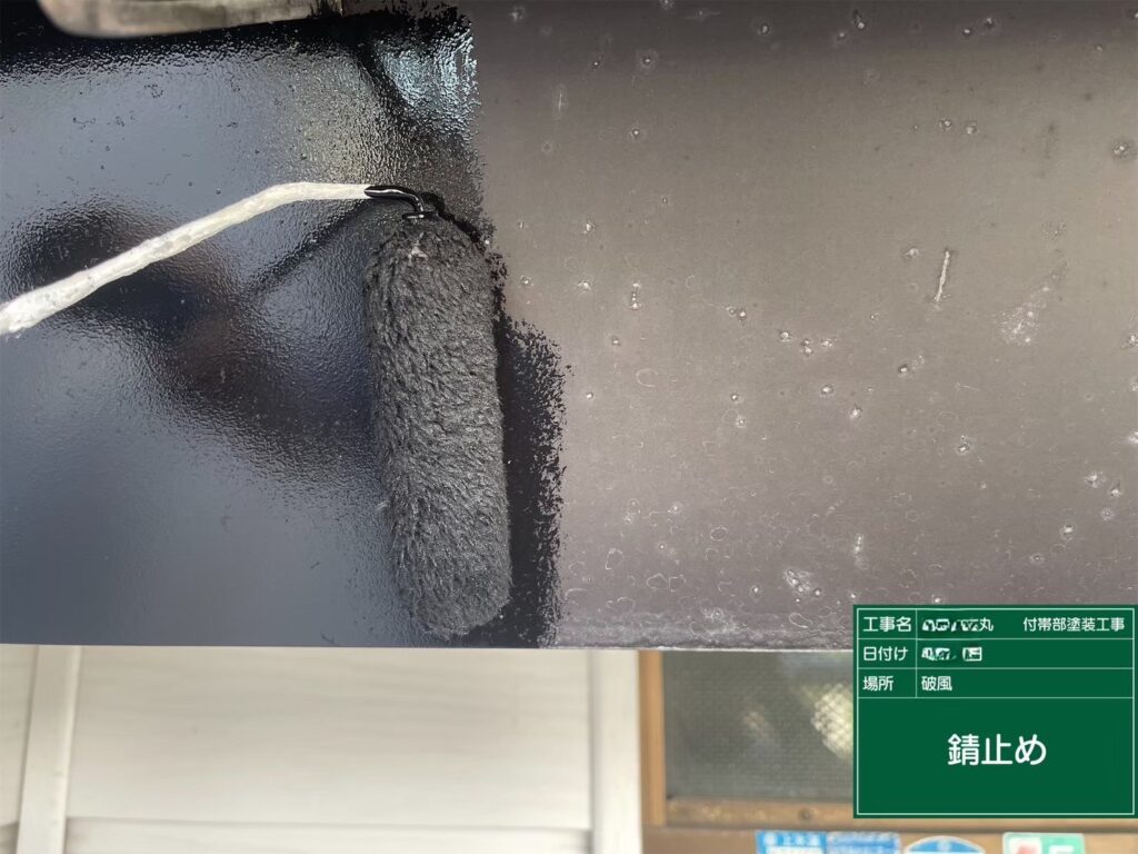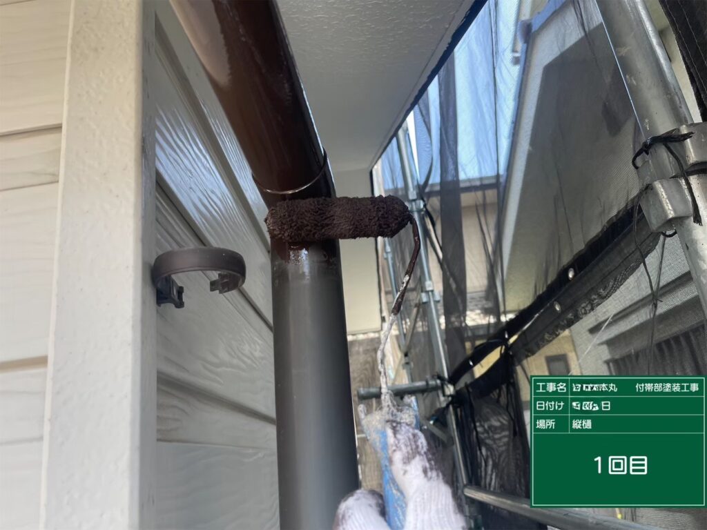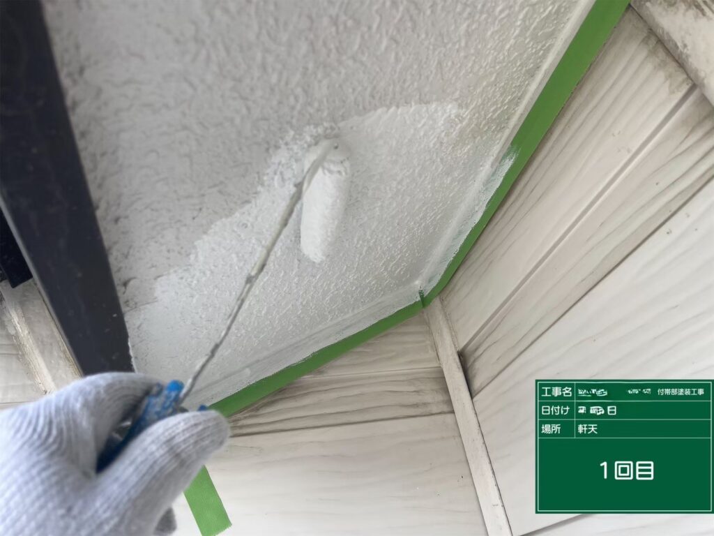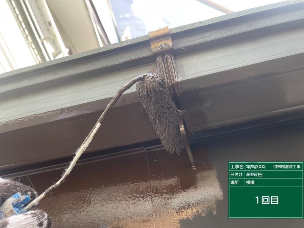 付帯部の塗装(1回目)を行いました。